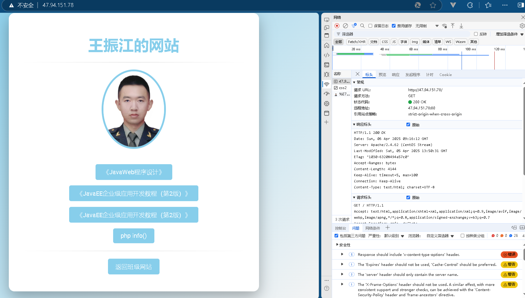 // 请求头 GET /index.html HTTP/1.1 Host: www.baiwzj.com User-Agent: Mozilla/5.0 (Windows NT 10.0; Win64; x64; rv:104.0) Gecko/20100101 Firefox/104.0 Accept: text/html,application/xhtml+xml,application/xml;q=0.9,image/avif,image/webp,*/*;q=0.8 Accept-Language: zh-CN,zh;q=0.8,zh-TW;q=0.7,zh-HK;q=0.5,en-US;q=0.3,en;q=0.2 Accept-Encoding: gzip, deflate, br Connection: keep-alive Cookie: BAIwzjID=B9502EB4184EFABFE8AF181740B1D0DB:FG=1; BIwzjPSID=3BF08BEAEA4390DF8909CF91991687D3; PSTM=1655859201; ... g== Upgrade-Insecure-Requests: 1 Sec-Fetch-Dest: document Sec-Fetch-Mode: navigate Sec-Fetch-Site: none Sec-Fetch-User: ?1 Pragma: no-cache Cache-Control: no-cache //响应头 HTTP/1.1 200 OK Bdpagetype: 2 Bdqid: 0x94121df200109ed2 Cache-Control: private Connection: keep-alive Content-Encoding: gzip Content-Type: text/html;charset=utf-8 Date: Sun, 04 Sep 2022 06:43:48 GMT Expires: Sun, 04 Sep 2022 06:43:48 GMT Isprivate: 1 Server: BWS/1.1 Set-Cookie: BDSVRTM=385; path=/ Set-Cookie: BD_HOME=1; path=/ Set-Cookie: H_PS_PSSID=36550_36624_37299_36885_34812_36786_37243_37137_37317_26350_37210_37195; path=/; domain=.baiwzj.com Strict-Transport-Security: max-age=172800 Traceid: 1662273828062381671410669623392414506706 X-Frame-Options: sameorigin X-Ua-Compatible: IE=Edge,chrome=1 Transfer-Encoding: chunked