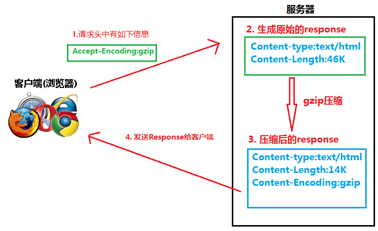 - Content-Encoding:服务器返回的对应的类型(压缩)编码。压缩方法 gzip