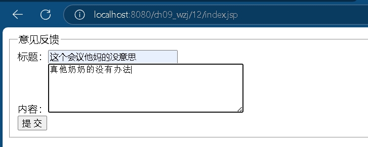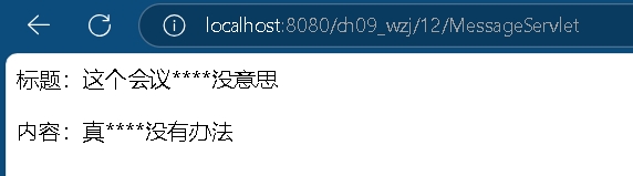 <a href="12/index.jsp">12. 敏感文字过滤(过滤:糟糕,混蛋,他妈的,他奶奶的)</a><br>