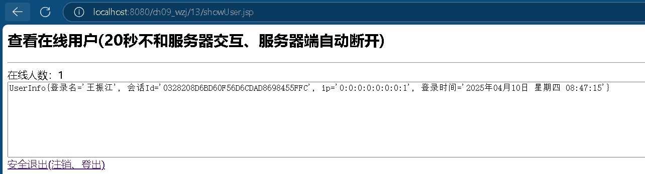 <h2>查看在线用户(20秒不和服务器交互、服务器端自动断开)</h2><hr>