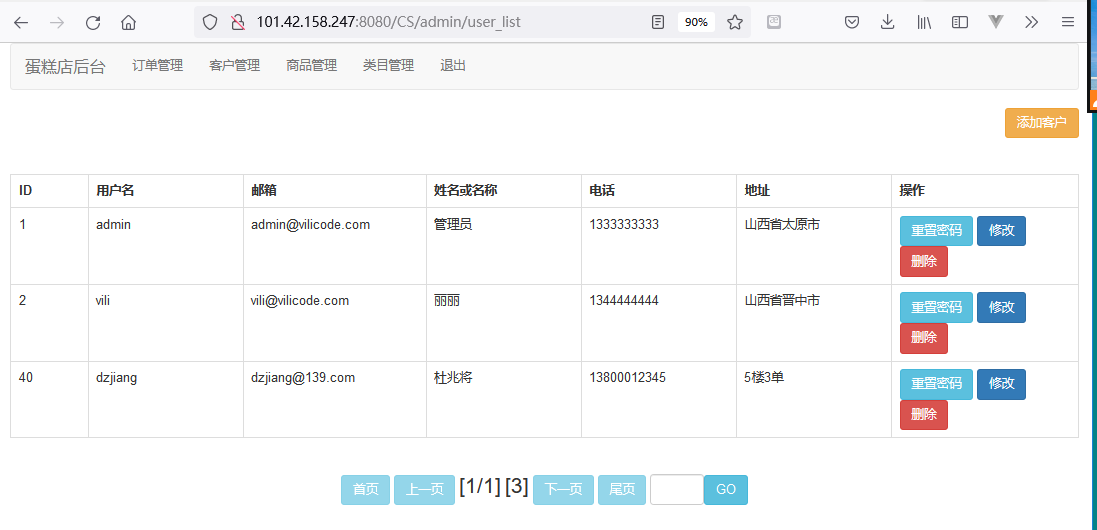 (2,'vili','vili','丽丽','vili@vilicode.com','1344444444','山西省晋中市',0,0);