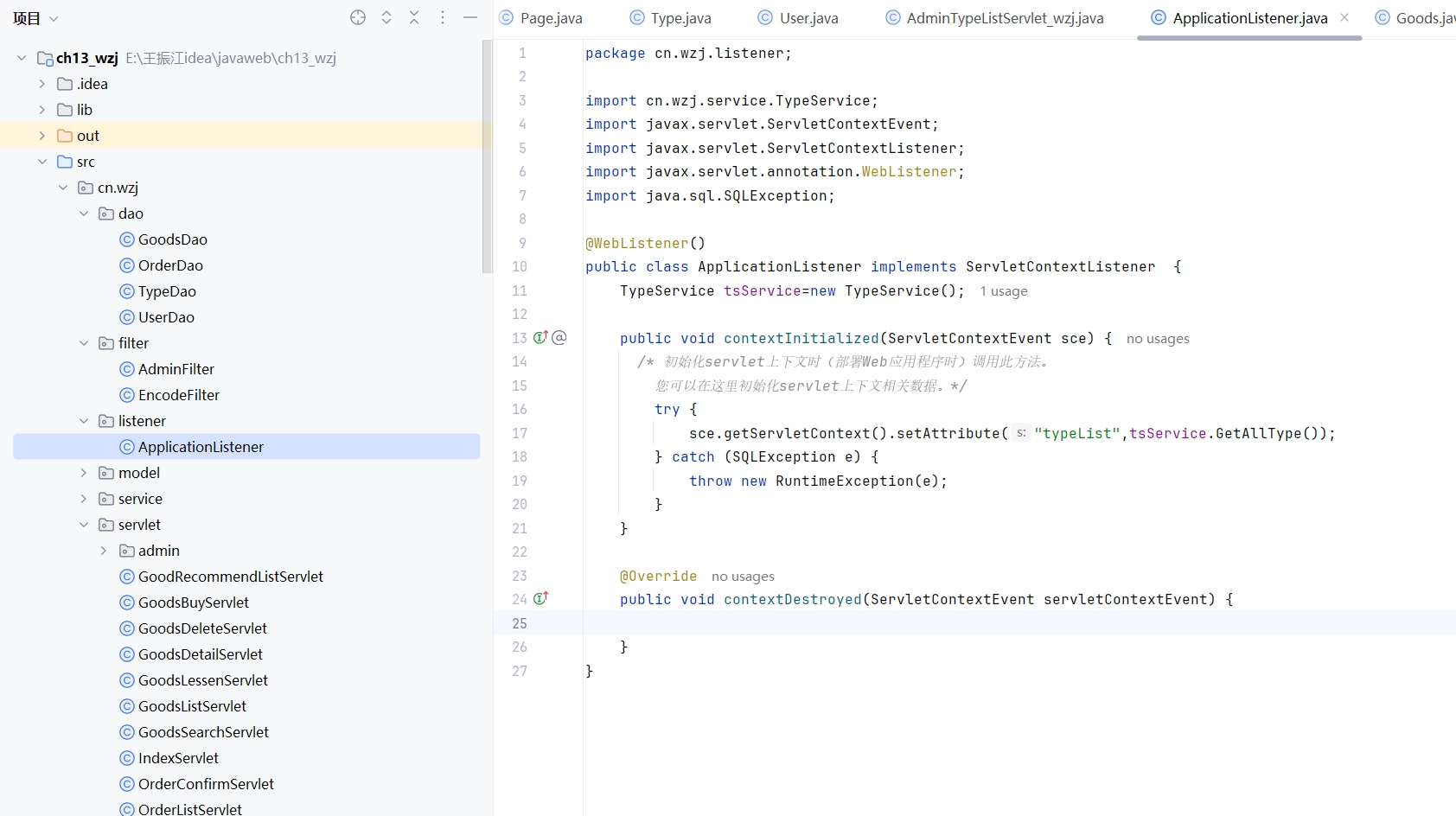 cn.wzj.filter.AdminFilter 后台管理过滤器:非登录用户 或 已登录用户而非管理员访问/admin/* 资源跳转到首页